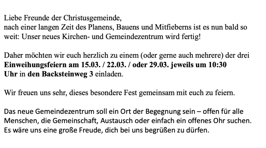 Schreibe uns über dieses Formular oder komme einfach spontan zum Gottesdienst vorbei. Wir freuen uns auf dich!
